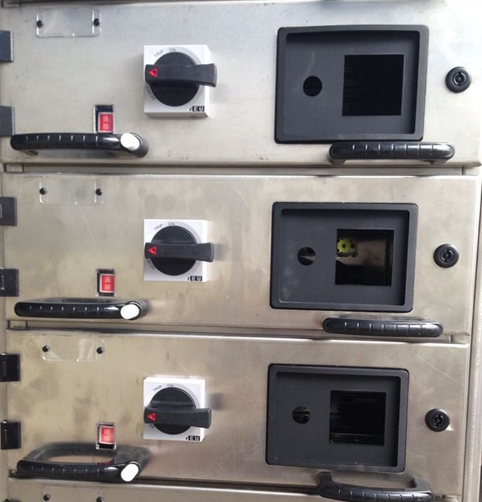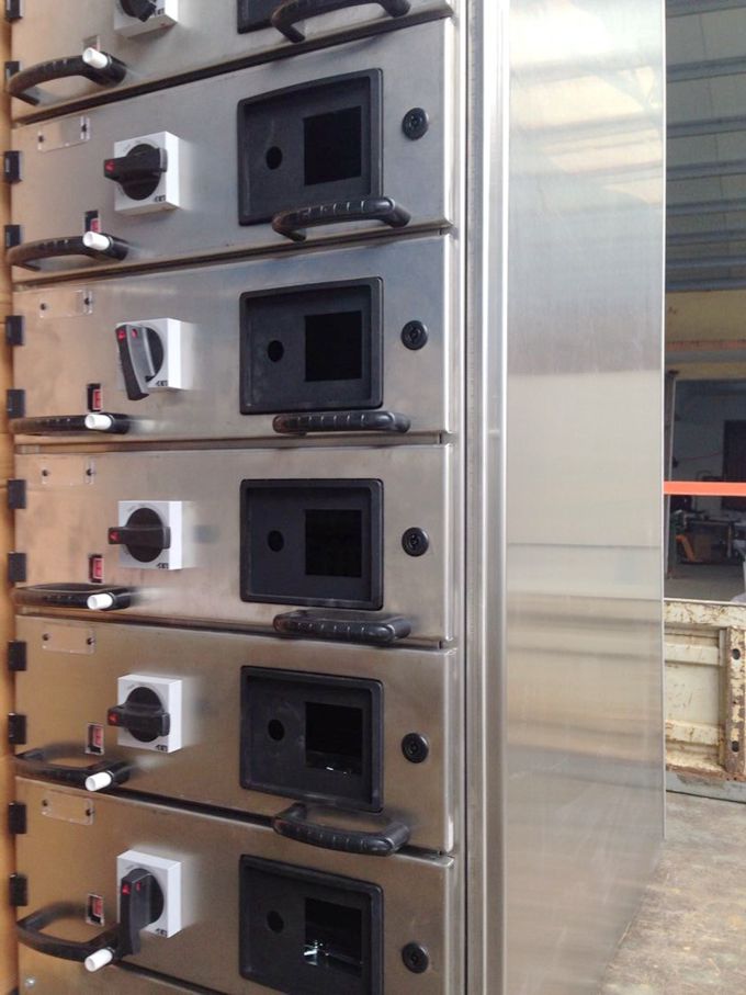 柜體采用組合裝配式結(jié)構(gòu),骨架采用KB型材或不銹鋼型材組裝而成。水平母線放置柜頂,柜頂采用敞開式結(jié)構(gòu),頂蓋可開啟,柜體裝有后門,出線方式采用后出線,安裝、維修更便捷。抽屜采用開門操作方式。開門操作時抽屜采用XJG3(旋轉(zhuǎn)三工位)推進機構(gòu)和BPT(撥把三工位)及DJG1-1G(旋轉(zhuǎn)三工位)推進機構(gòu)。一次插件采用新型無活門方式,可靠性更高。單元回路可實現(xiàn)額定電流630A及以下方案,其中1/2單元抽屜電流可達到125A,1/4.63A。柜體防護等級IP4X。
